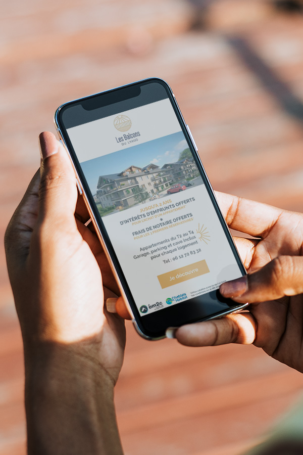Mise en avant du programme immobilier "Les balcons du Lyaud" en display mobile